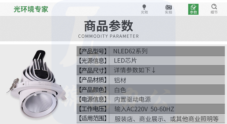 雷士(NVC)LED嵌入式翻转射灯筒灯NLED 622D 20W-开孔120MM-白光
