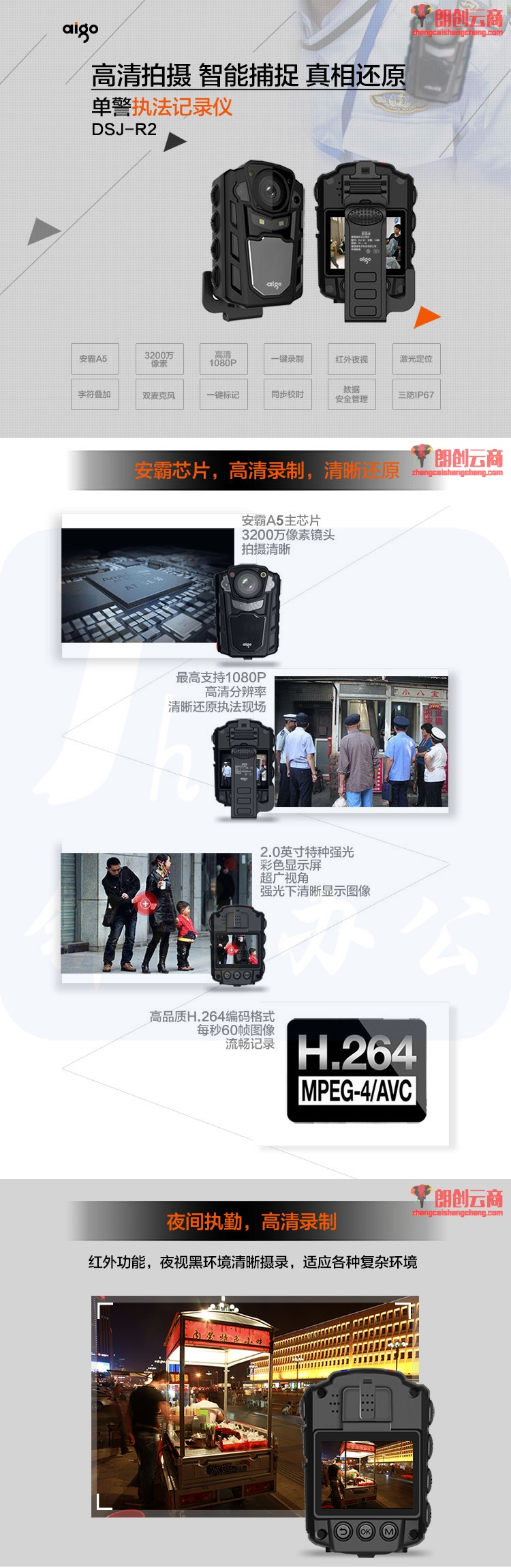 爱国者(aigo) DSJ-R2 执法记录仪 警用版 红外夜视1080P便携加密激光定位录音录像拍照对讲 32G