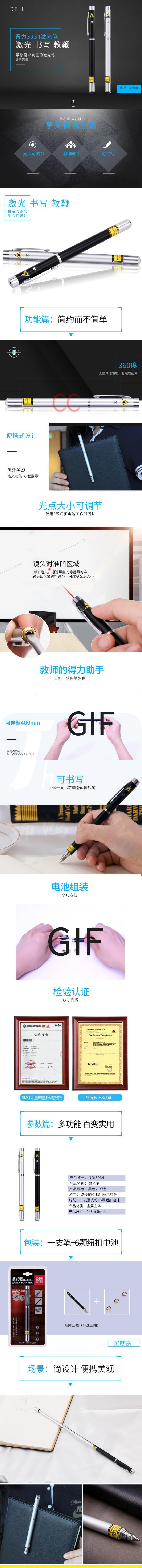 得力 3934激光笔 可伸缩激光教鞭 钢笔造型激光笔银色