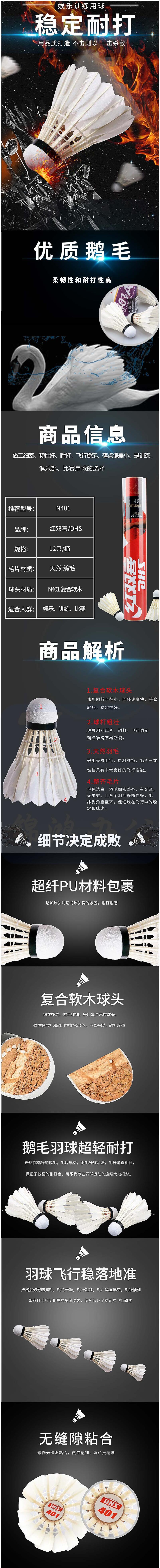 红双喜 羽毛球 N401 12支/桶