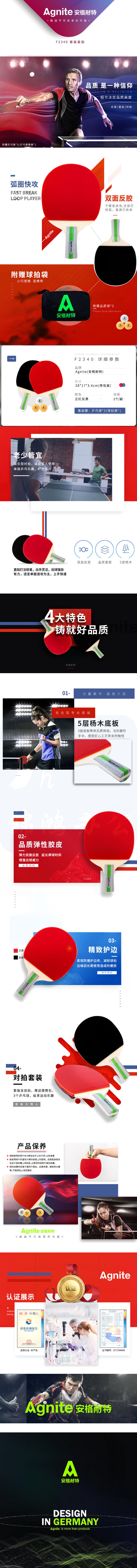 安格耐特F2340乒乓球拍(正红反黑)(2个/副)