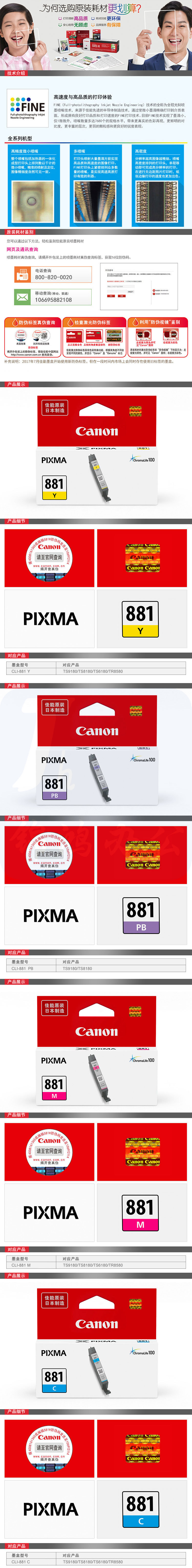 佳能 CLI-881BK黑色 墨盒 适用TS8280、9180、8180、6180、TR9580