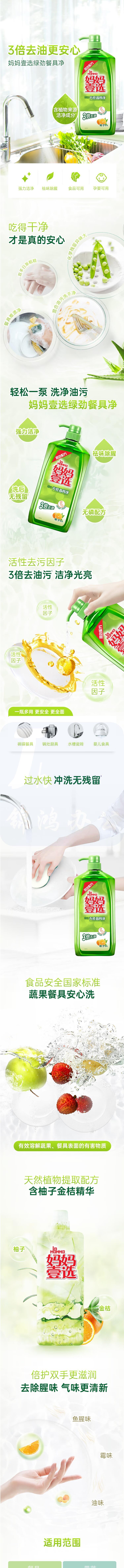 妈妈壹选 绿劲餐具净柚子金桔2kg洗洁精去油洗涤灵