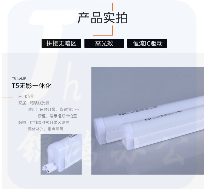 佛山照明LEDT5一体化支架 8W 6500K 0.6米 公母插 炫丽系列20支/箱