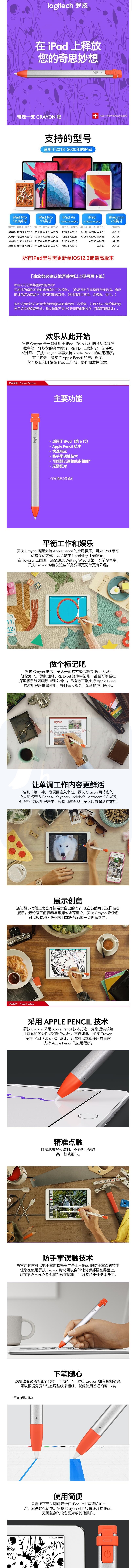 罗技(Logitech)Crayon手写触控笔 pencil手写笔 iPad平板笔 ip10数字笔
