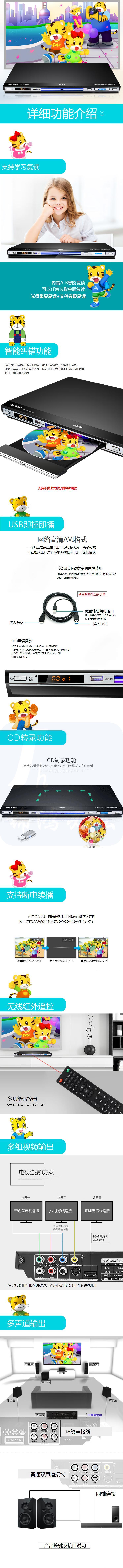 先科PDVD-959A DVD播放机 HDMI巧虎播放机CD机VCD DVD光盘光驱播放器 影碟机 USB音乐播放机 黑色