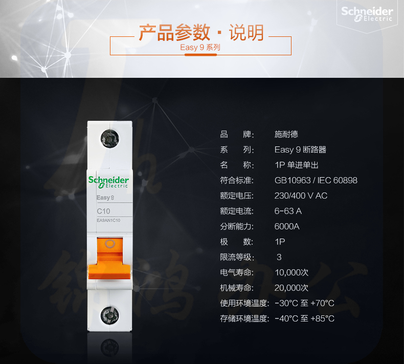 施耐德电气(SCHNEIDER)小型断路器(照明型C)EA9AN-C1P/20A