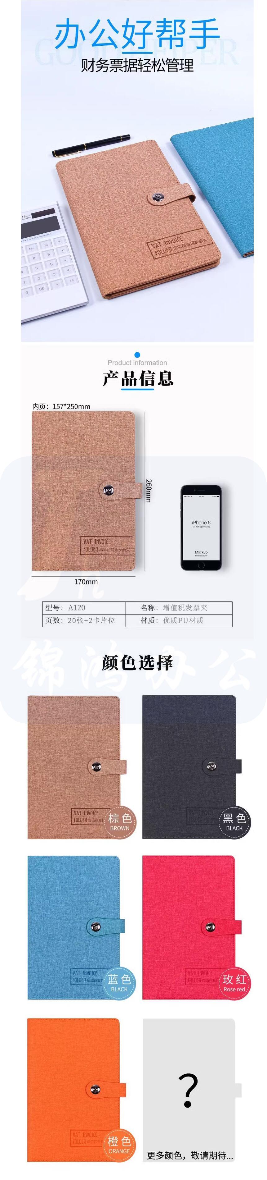 B5加厚发票夹增值税用票夹 A120棕色 货号:YC