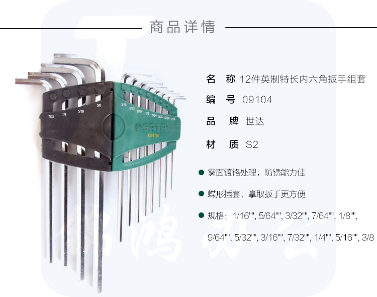世达(SATA)12件英制特长内六角扳手组套 货号09104