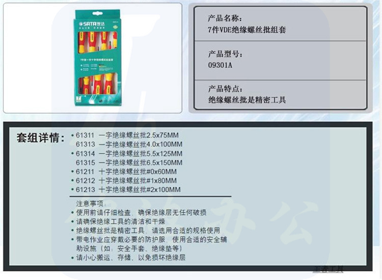 世达(SATA)7件VDE绝缘螺丝批组套 09301A
