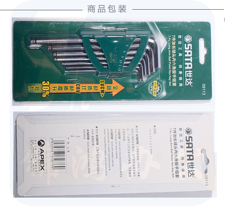 世达(SATA)7件加长球头内六角扳手组套货号09113