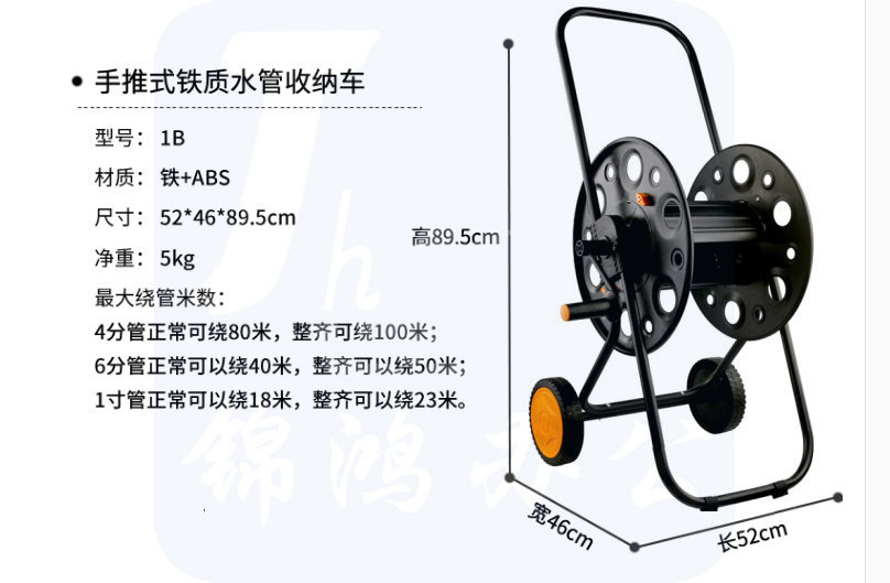 金属水管车收卷器 绕管洗车绞盘 含6分自来水管20米 货号:JC