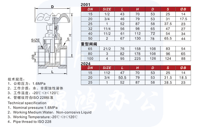 皇冠 DN40 通径铜闸阀 1.5寸重型闸板阀2001