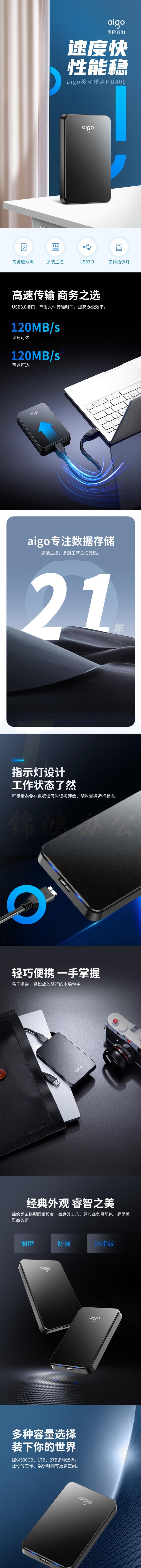 爱国者 1TB移动硬盘 HD809 USB3.0 移动硬盘 黑色 睿智之美 商务便携