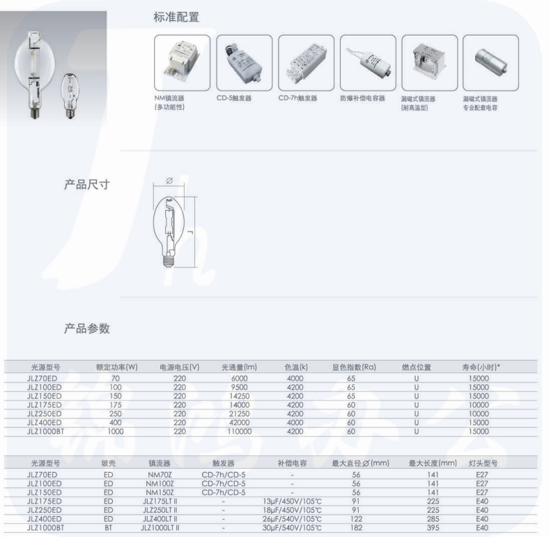 亚明 金卤灯泡JLZ175.KN E40灯口