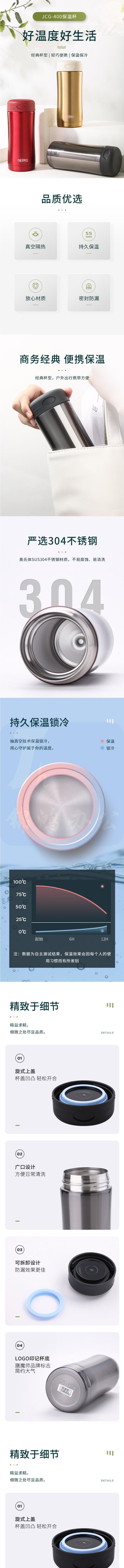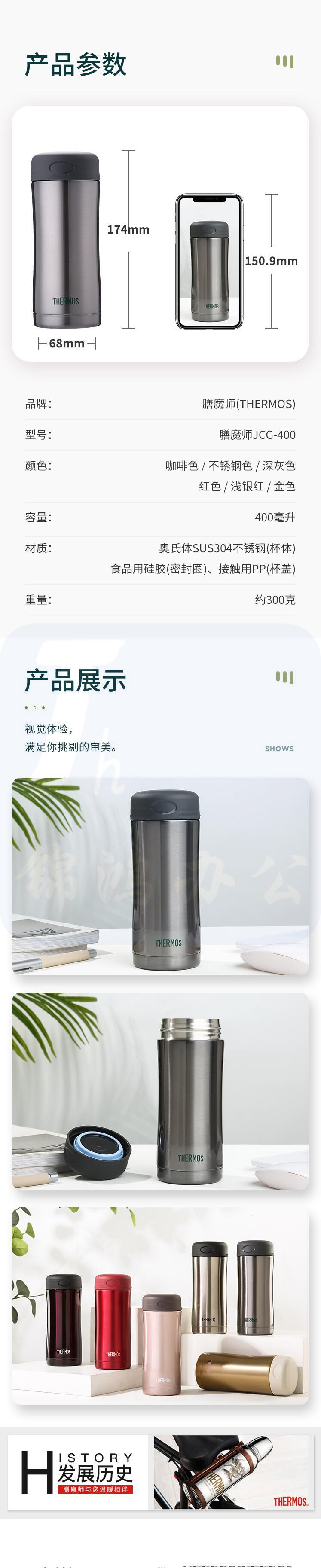 膳魔师 保温杯400ml男女商务办公保冷水杯子 JCG-400 粉