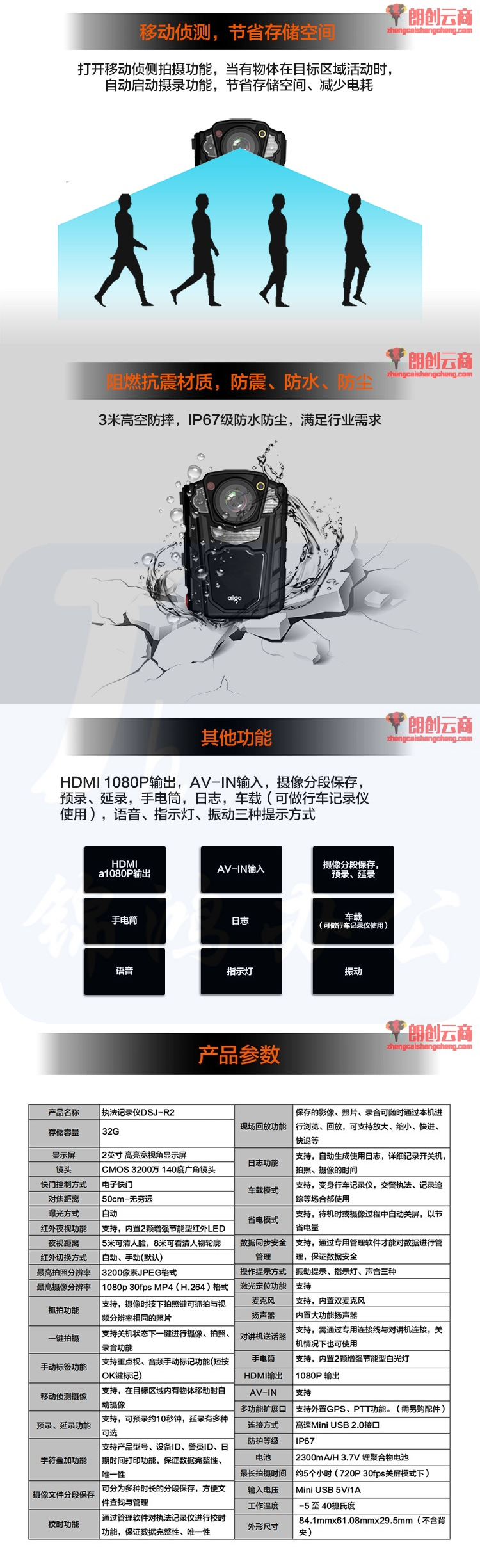 爱国者(aigo)DSJ-R2 执法记录仪 红外夜视1080P便携加密激光定位录音录像拍照对讲 32G