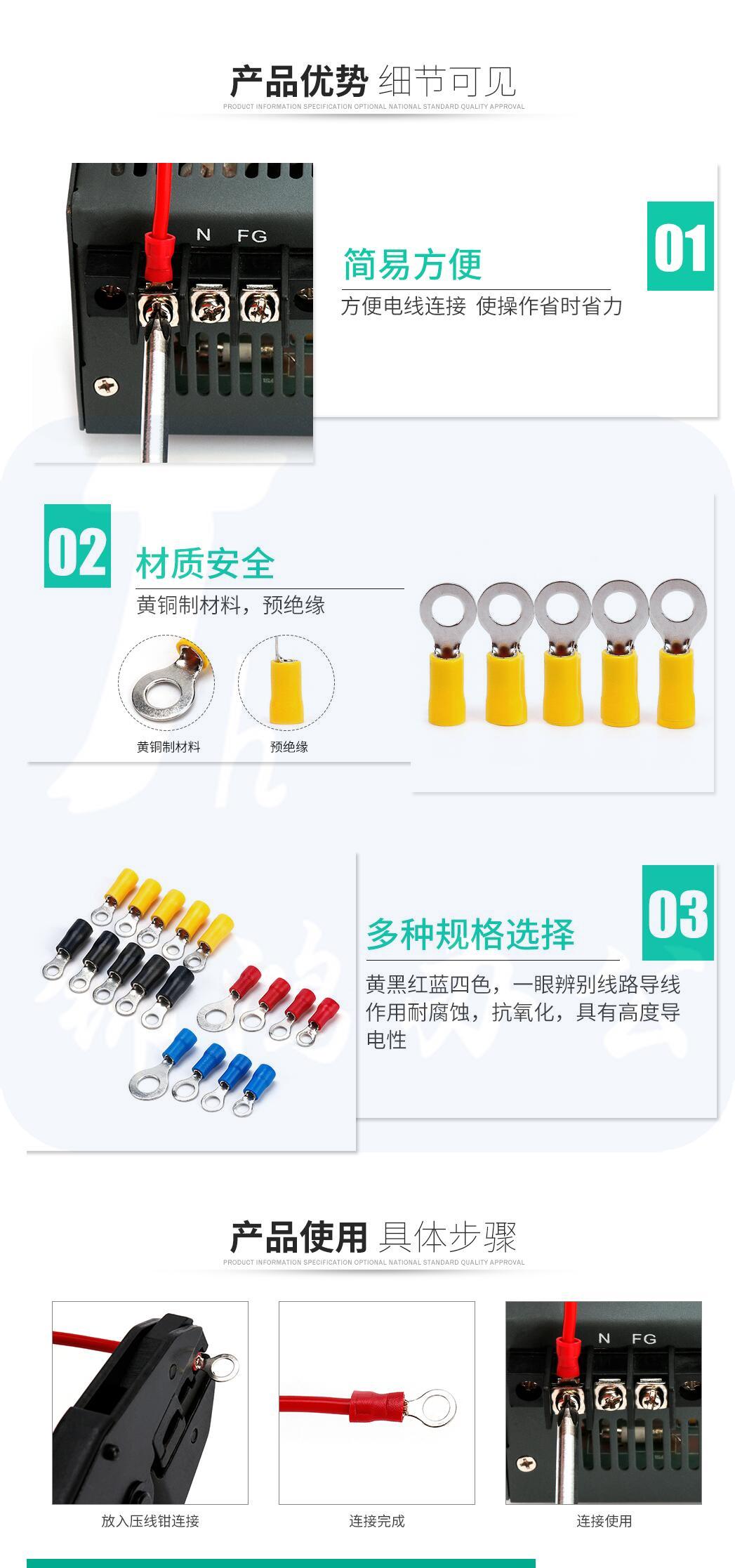 RV系列圆形预绝缘端头接线端子冷压端头 RV1.25-6 1000个/包 货号:YC