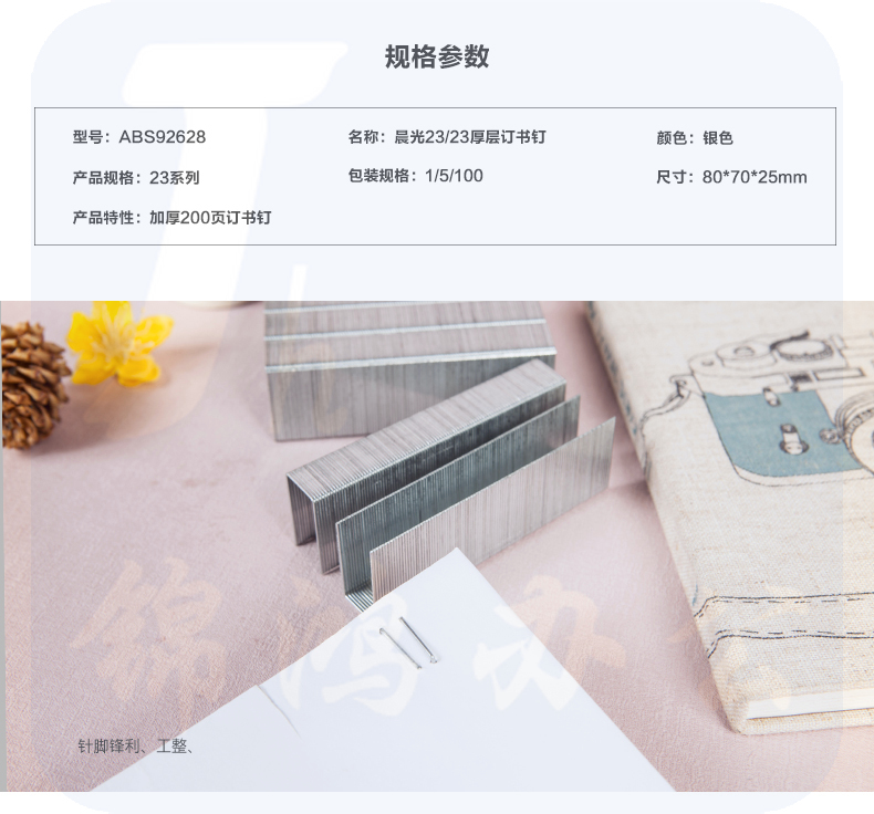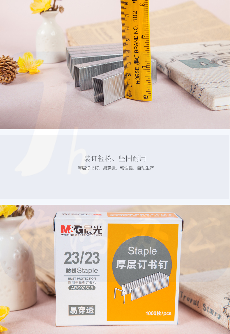 晨光 23/23号厚层订书钉 易穿透订书针 重型订书钉1000枚/盒 5盒装ABS92628
