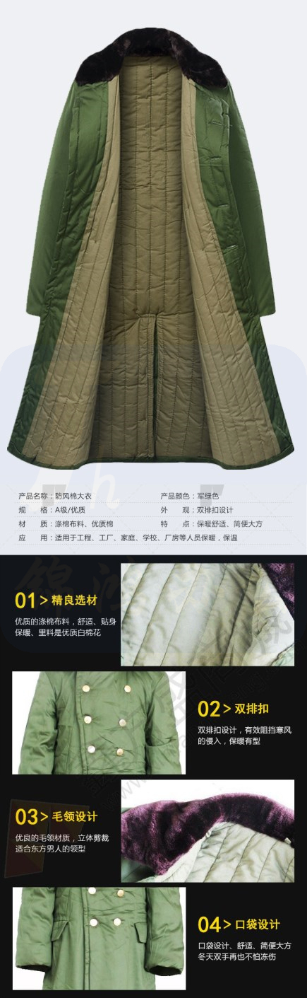 劳保棉服 防寒保暖绿军大衣 (160cm-185cm)