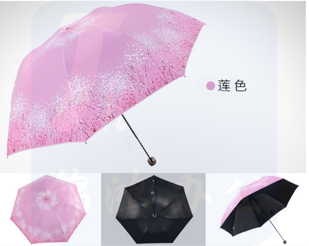 天堂伞 森系女孩黑胶丝印三折超轻蘑菇公主晴雨伞太阳伞 粉红 30134E