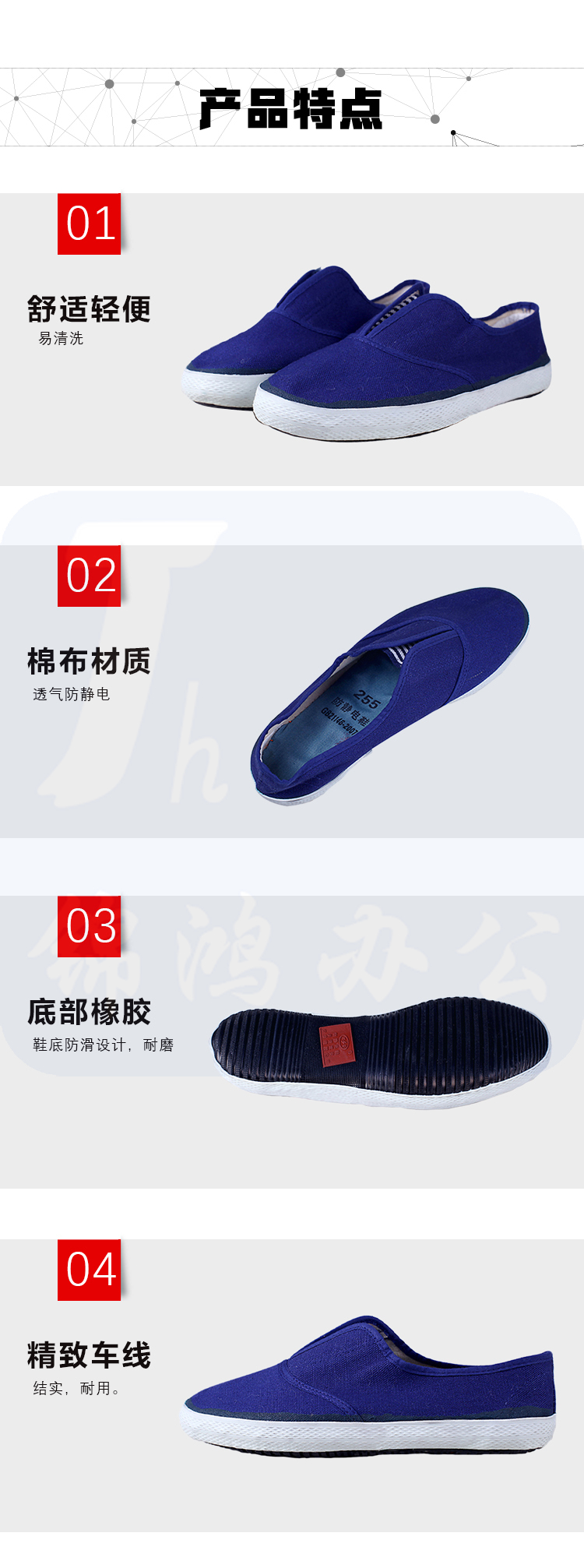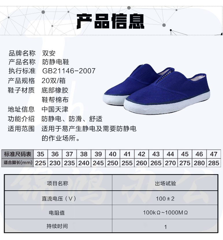 双安 防静电布面胶鞋 42 蓝色