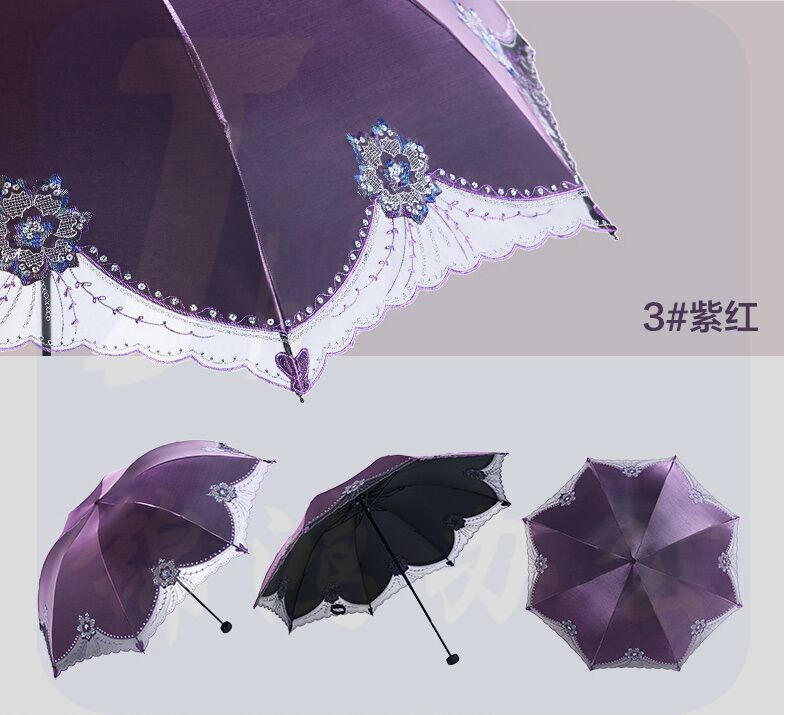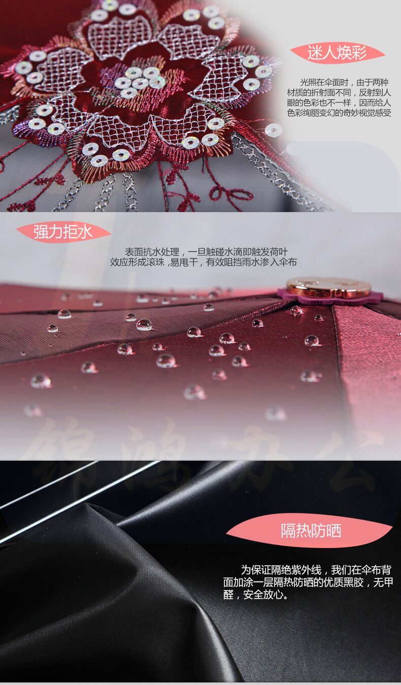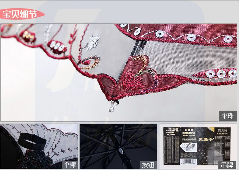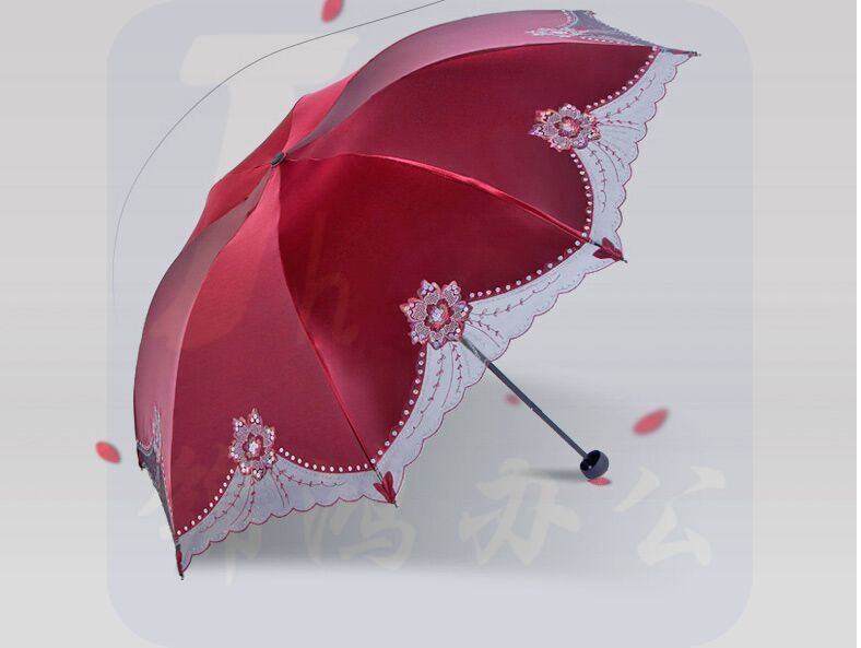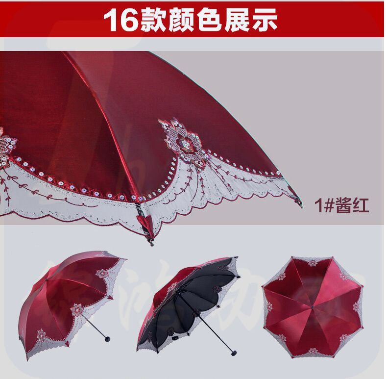 商品名称:天堂伞专卖店 防紫外线三折伞折叠蕾丝绣花伞晴雨伞遮阳伞二用UPF50+女士太阳伞超轻超强防晒伞 红色2