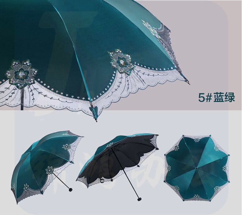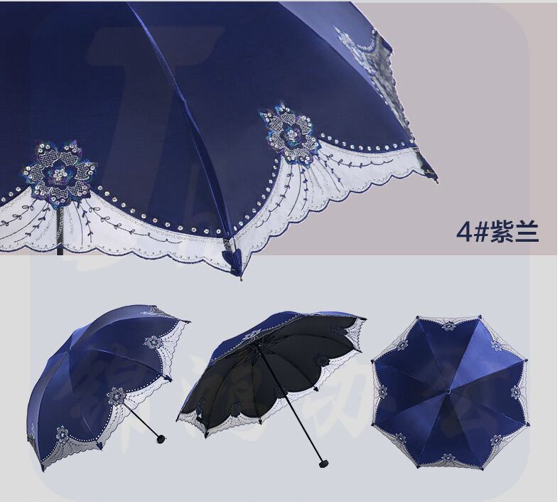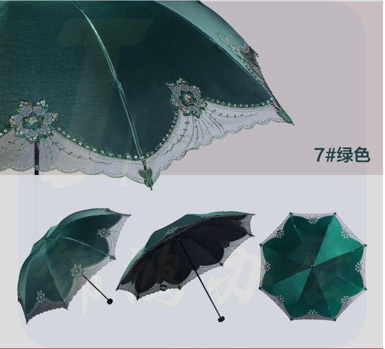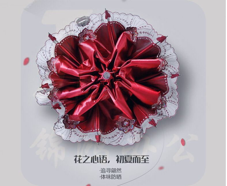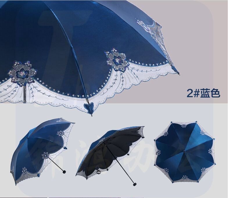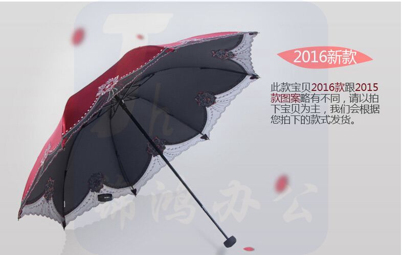 商品名称:天堂伞专卖店 防紫外线三折伞折叠蕾丝绣花伞晴雨伞遮阳伞二用UPF50+女士太阳伞超轻超强防晒伞 红色2