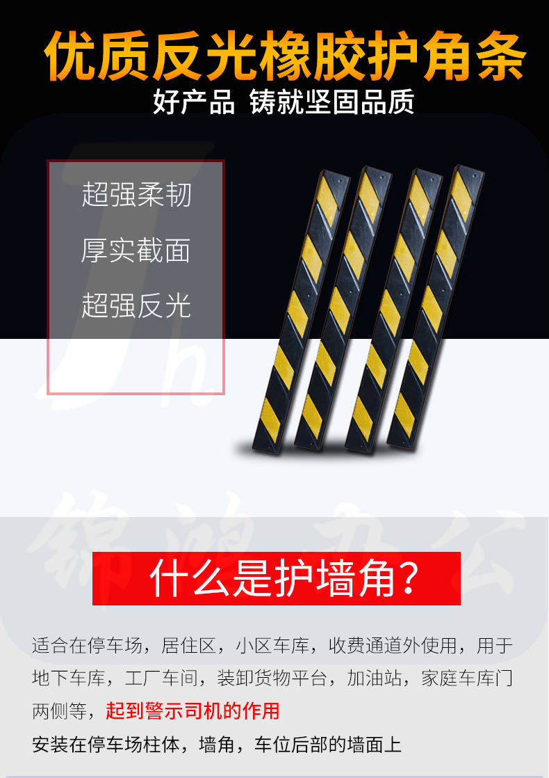 巨联(JULIAN)反光护墙角长橡塑胶护角防撞条 停车场地下车库护角线墙角保护器条交通设