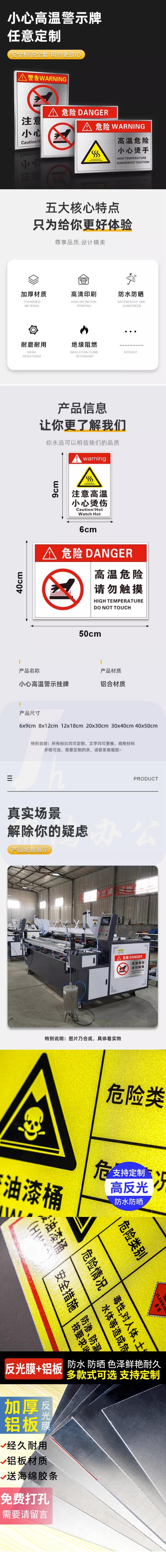 注意高温T44-灰色[铝板加厚] 高温注意小心烫伤警示铝牌铝板标牌20*30cm