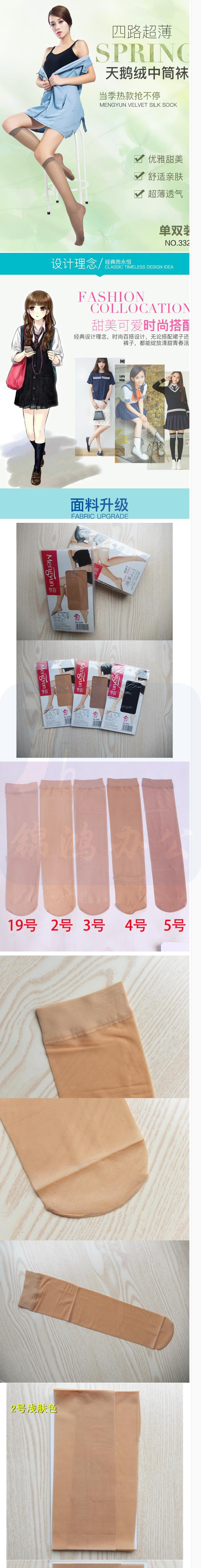 天鹅绒中筒丝袜 不过膝女小腿袜 2号浅肤色 5双 货号:JC