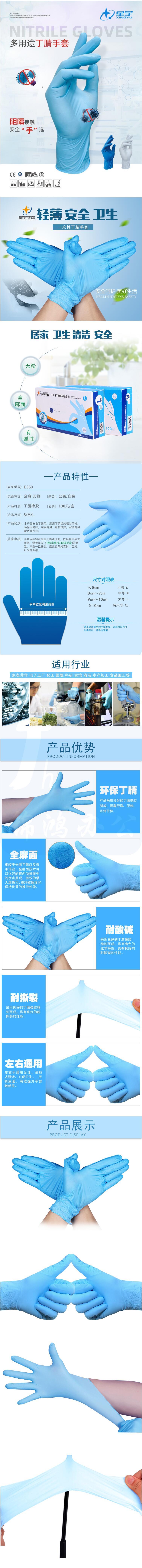 星宇 E350一次性手套 蓝色丁腈洁净室手套(100只盒)