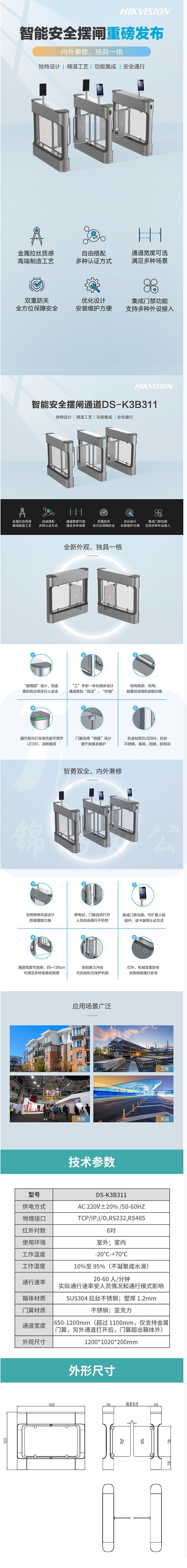 海康威视 DS-K3B311 人脸识别 门禁通道 人行道闸机 双通道套装 货号:JC