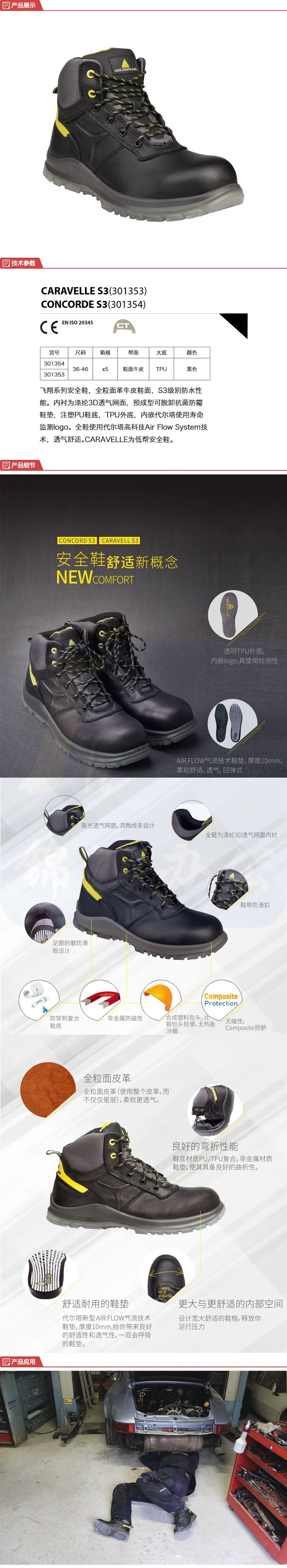 代尔塔 301354 全粒面革牛皮鞋面 防砸 防静电 防油 防水 防刺穿 防滑高帮鞋