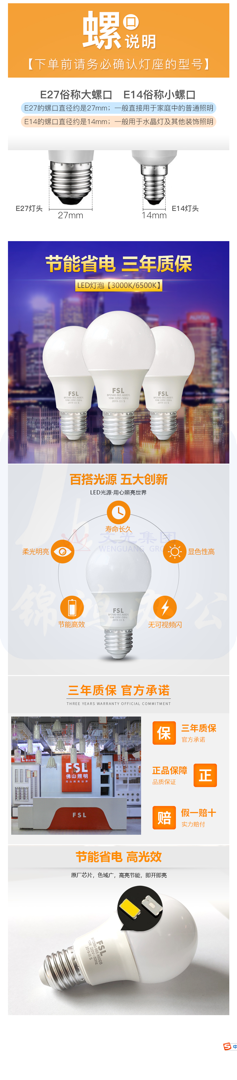 佛山照明 LED球泡24W节能灯泡E27白光6500K