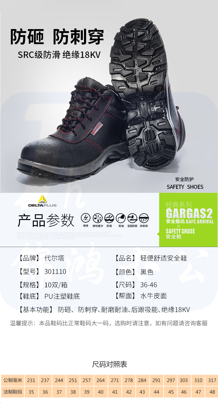 代尔塔 301110 经典系列无金属高帮防砸防刺穿18KV绝缘鞋