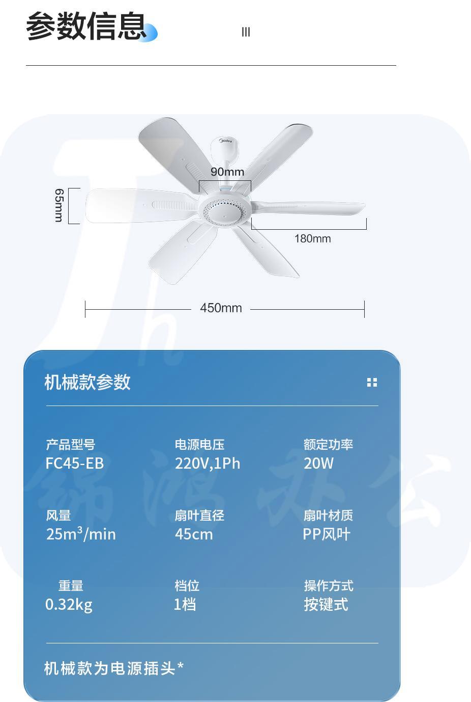 美的(Midea) 小吊扇 小型电风扇 蚊帐扇 FC45-EB
