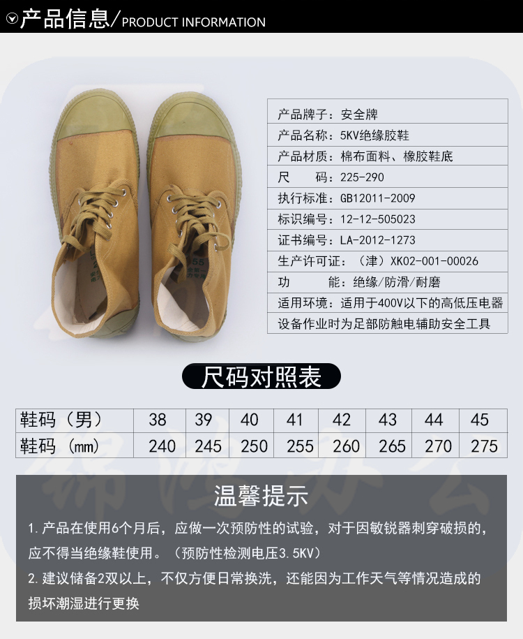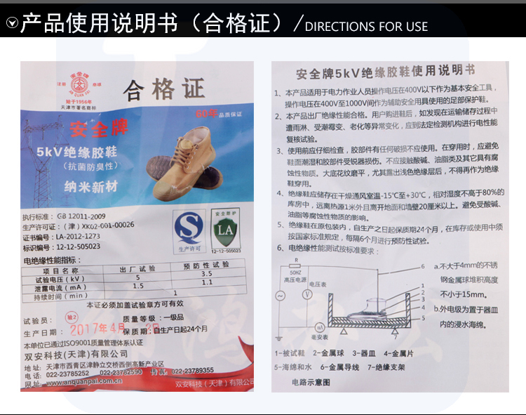天津双安安全牌(ANQUAN)5KV 绝缘胶鞋 42#