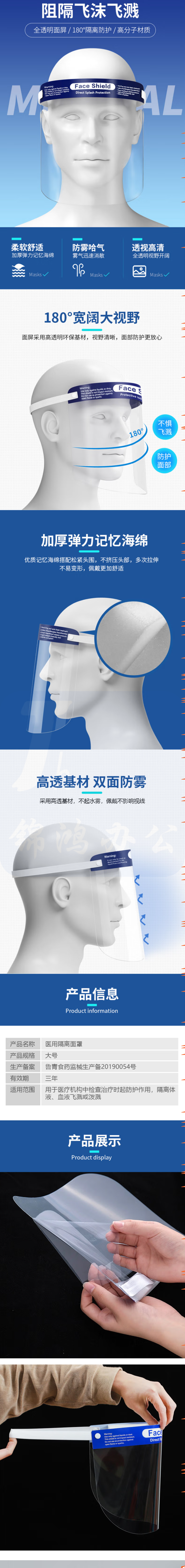 海氏海诺 隔离面罩 防护面罩面屏 防尘防飞溅防唾沫(10个/袋)