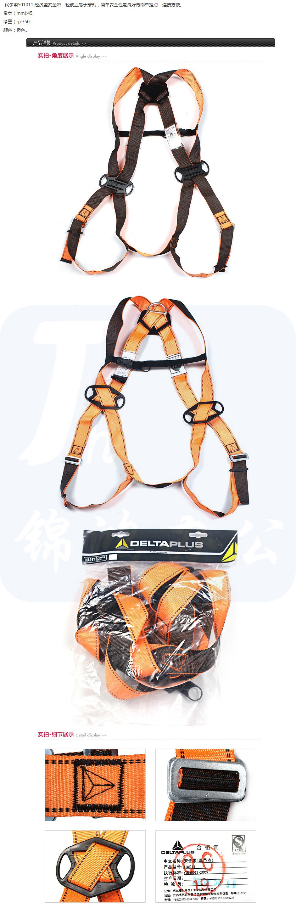 代尔塔 501011 经济型安全带 HAR11 橙色