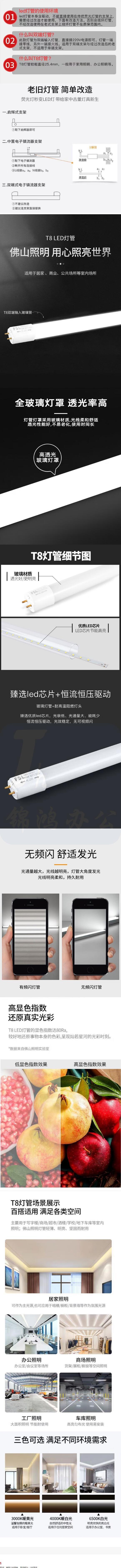 佛山照明 1.2米 18W灯光 T8 LED双端供电日光灯管白光6500K