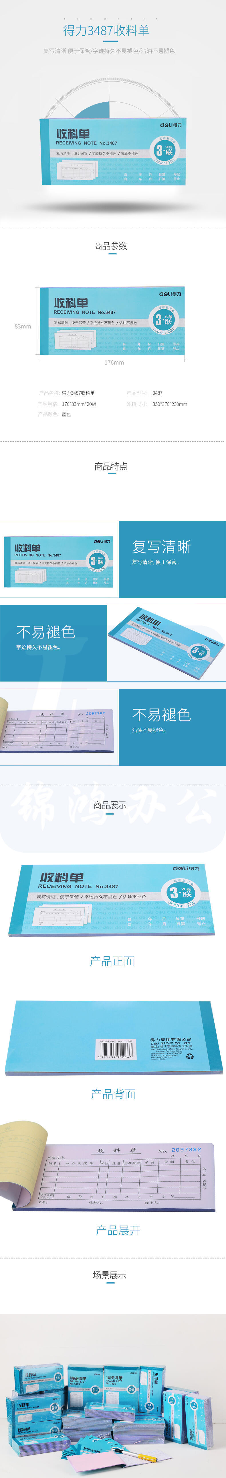 得力 三联单据票据领料单收料单(10本)3487