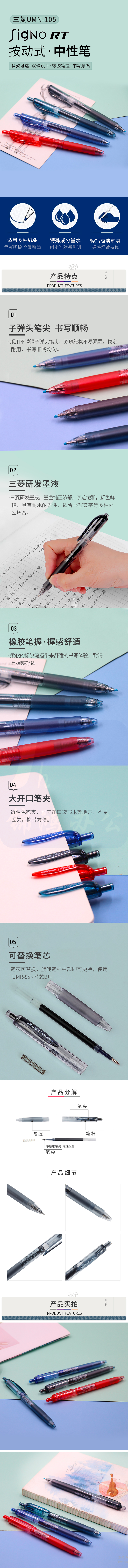 三菱 UMN-105按动中性笔 0.5mm 黑色(12支/盒)