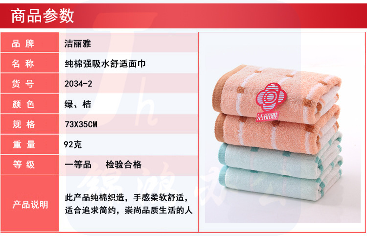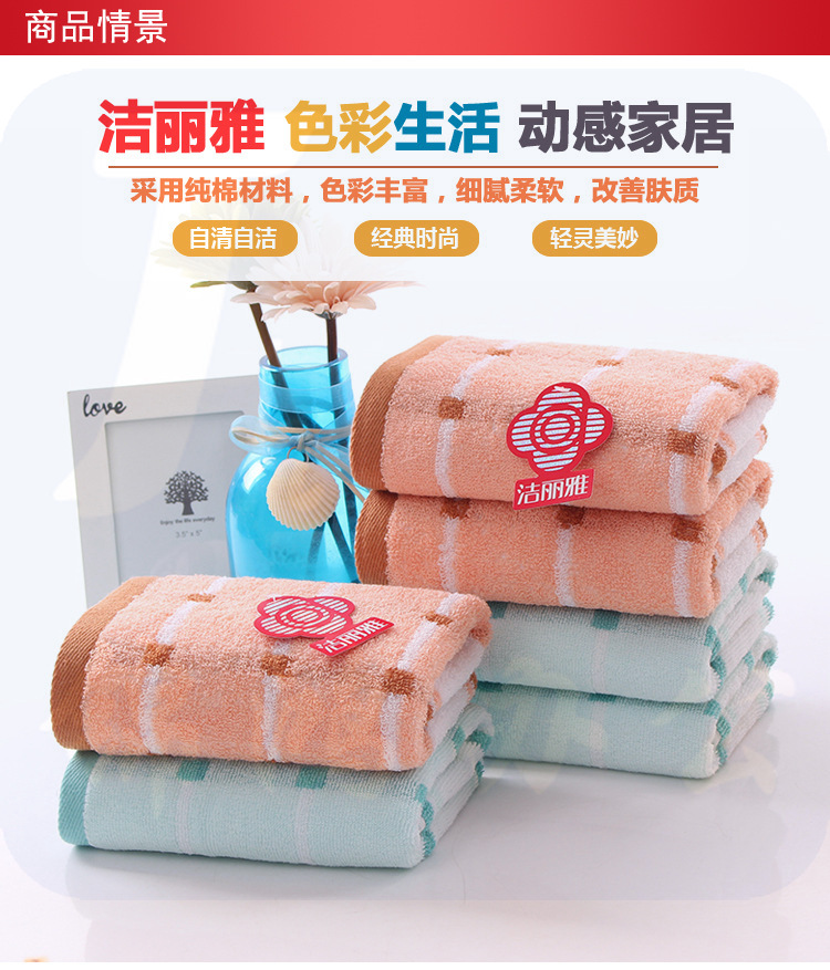 洁丽雅 2034 毛巾74*36cm 强吸水舒适面巾 纯棉洗脸毛巾 颜色随机