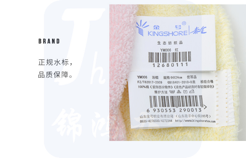 金号(KINGSHORE) 干发帽纯棉 超强吸水干发巾成人加厚浴帽擦头毛巾速干包头巾 YM008红色 64cm x 24cm