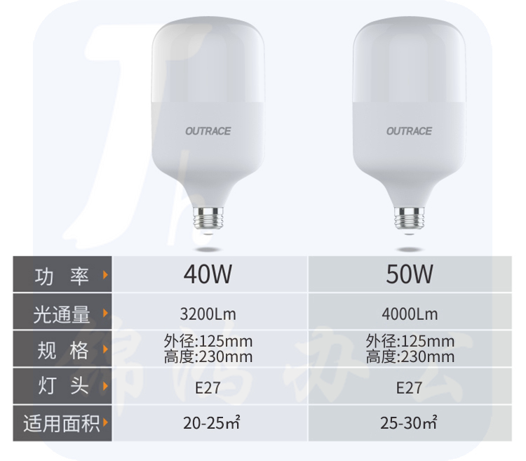 奥其斯 LED灯泡E27螺口48W白光 高护帅大功率高亮球泡灯