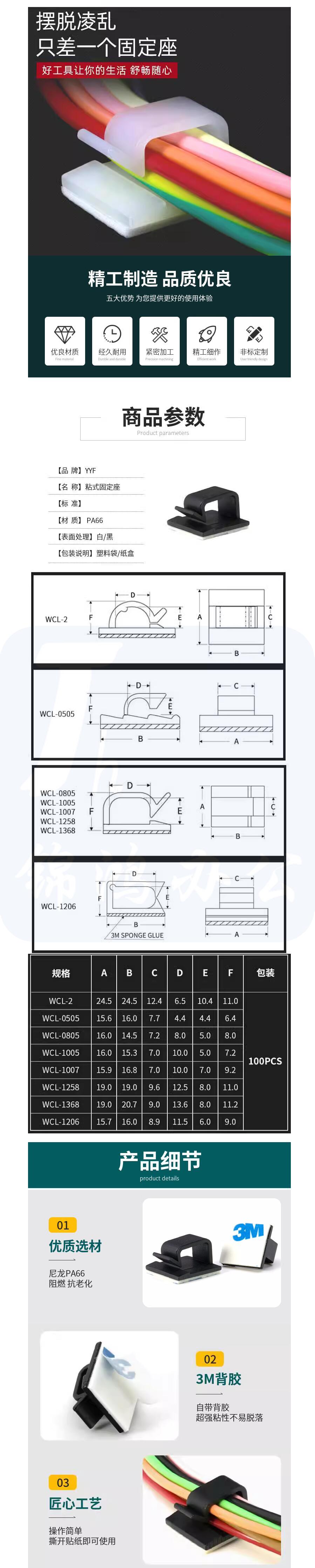 WCL粘式固定座 电线固定夹 网线理线器卡 WCL-1007 100个/包 货号:JC