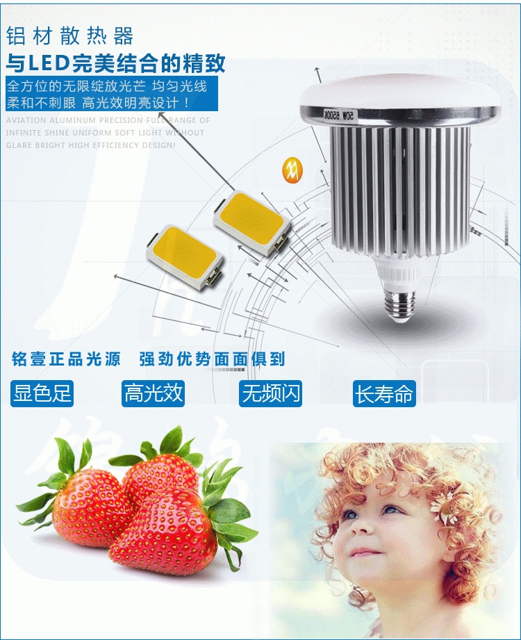 铭壹(MYMY11)MMG02-E27/15W/6500K LED蘑菇泡灯泡高亮球泡大功率灯泡