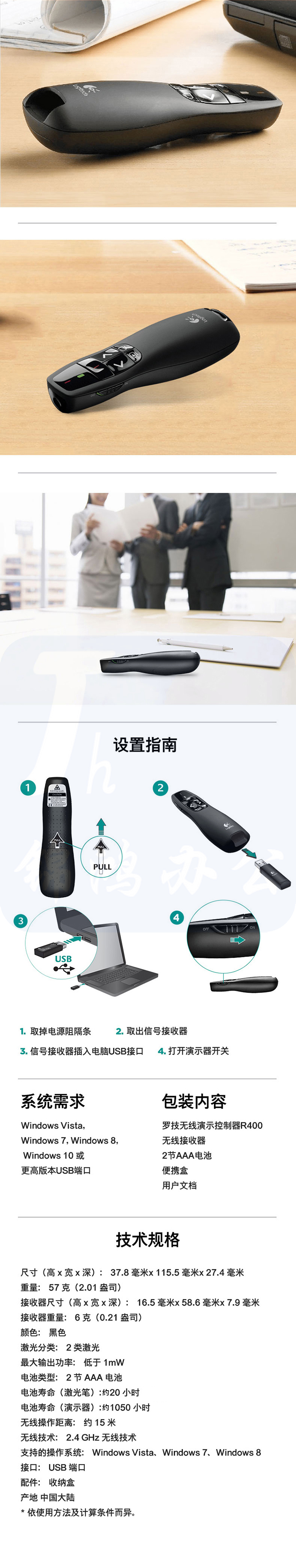 罗技 R400 无线演示器 ppt翻页笔 演示笔投影笔(激光笔)