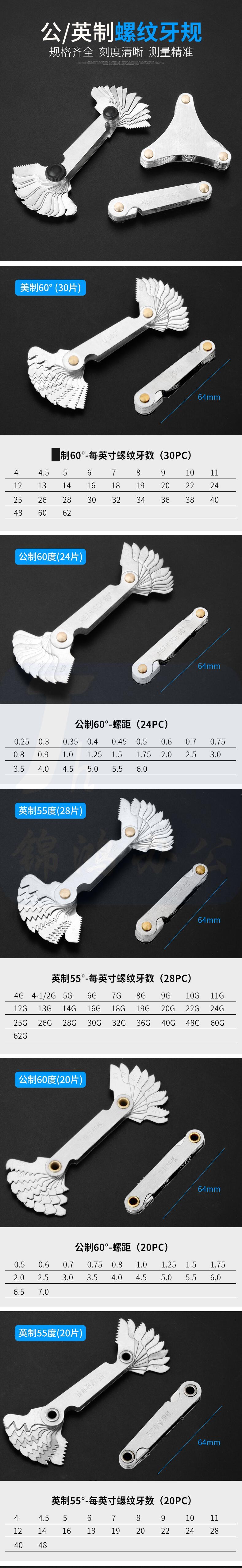 晶花牌(JINGHUA)60度 螺纹规 螺纹样板牙规螺纹规